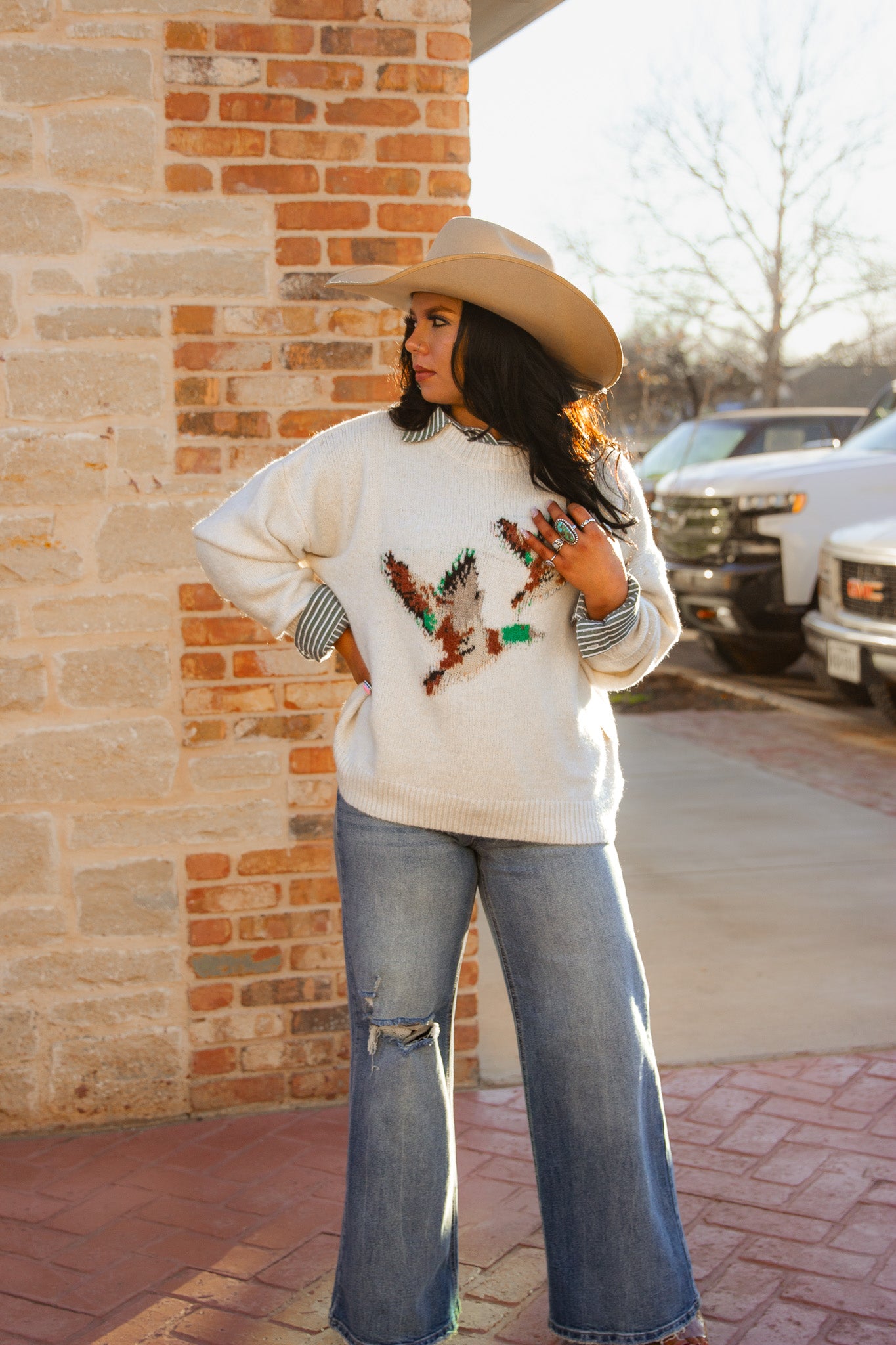 Get cozy and stylish with the After The Hunt Sweater! Made with soft wool, this sweater features a unique print of two flying ducks. Perfect for any outdoor enthusiast, it's both functional and fashionable. Embrace your inner quirkiness and stand out from the flock!