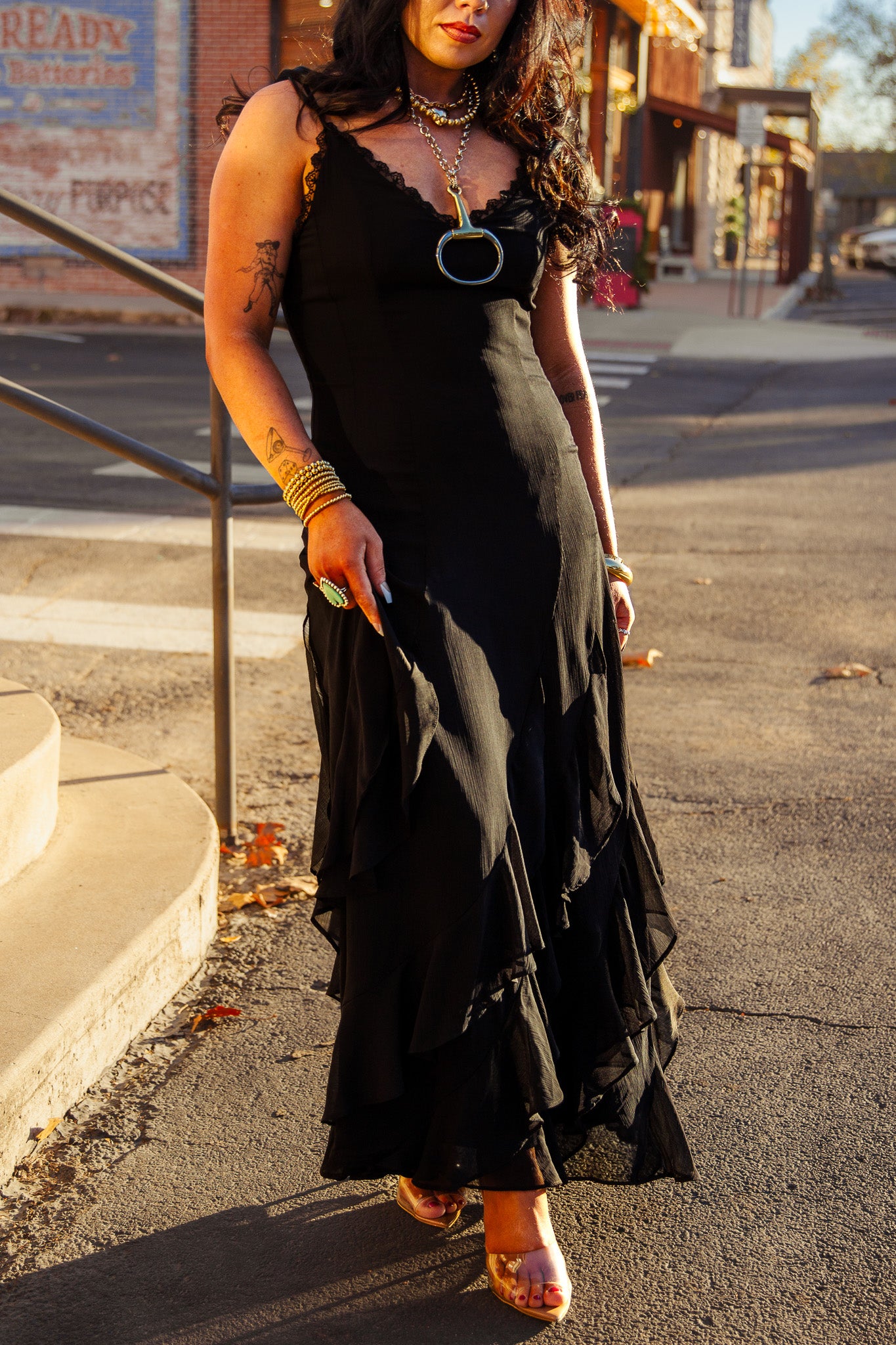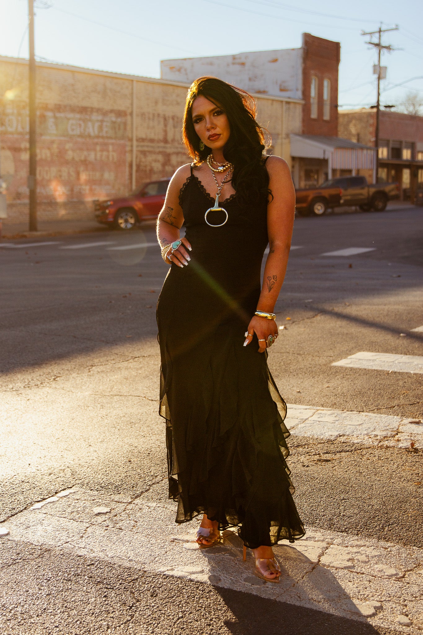 Expertly designed for versatility, The Lone Star Lace Dress is a must-have for any wardrobe. Featuring a delicate V-neck and cascading ruffles, this cami dress is suitable for any occasion. Elevate your style with this elegant dress and make a statement wherever you go.