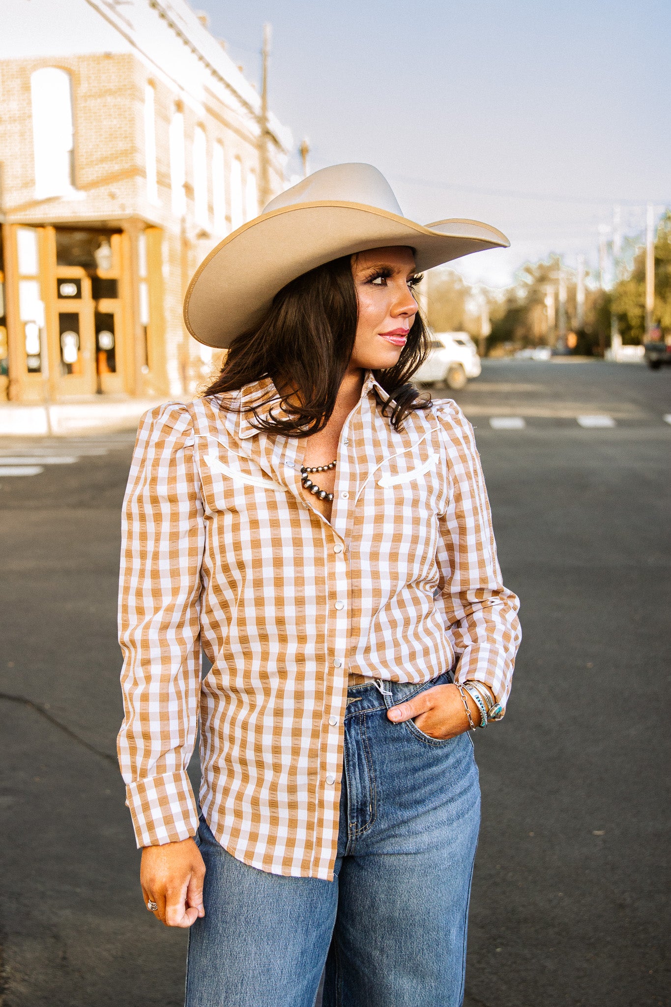 Introducing The Western Whimsy Top, the perfect addition to your wardrobe for any occasion. With its charming gingham print, this top is sure to make a statement. Featuring versatile styling options, it's a must-have for any fashion-forward individual. Don't miss out on this timeless piece.