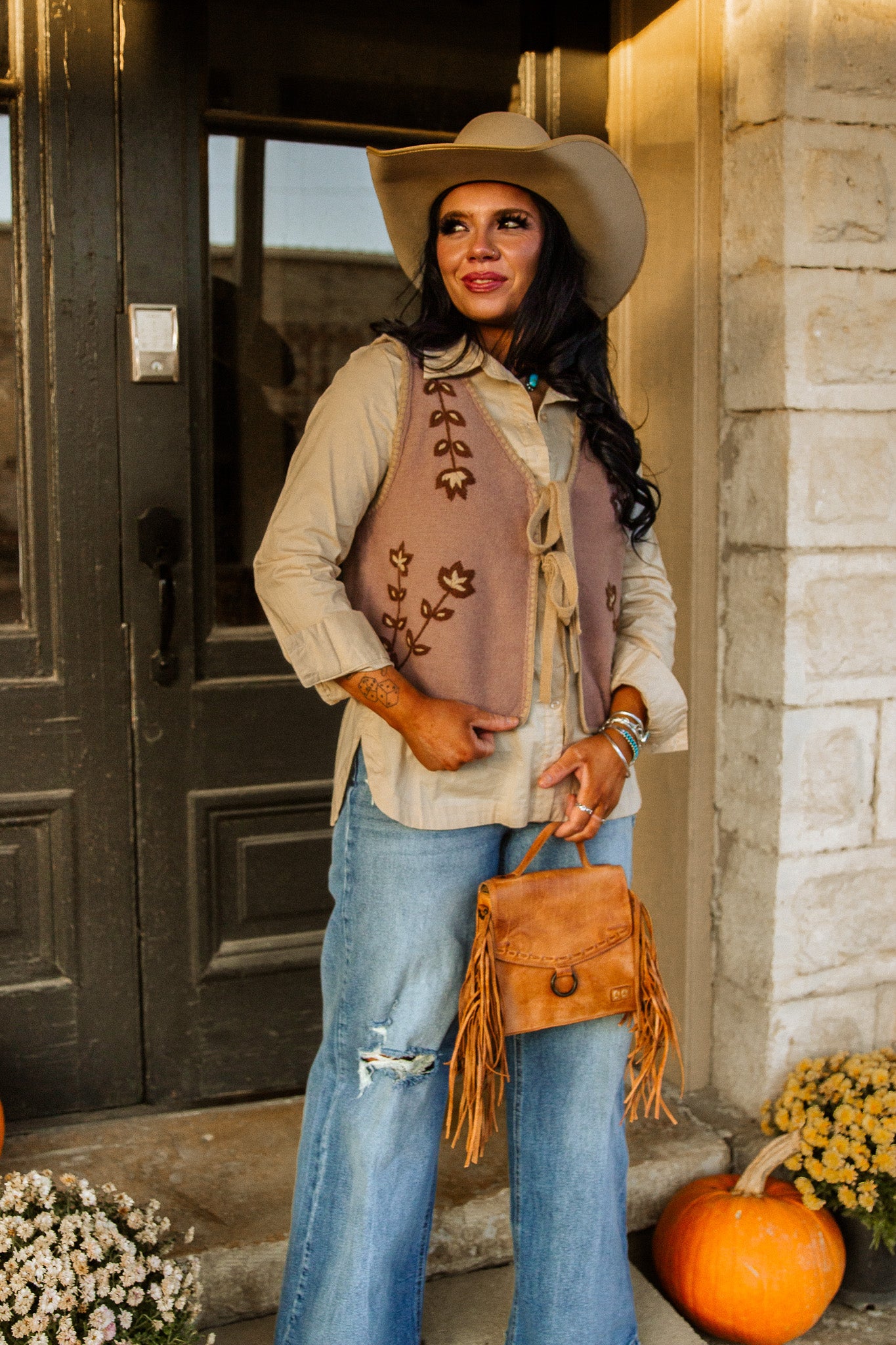 Designed for effortless styling, this vest transitions beautifully from ranch mornings to downtown afternoons, adding that touch of Boho Cowgirl warmth and old-soul sophistication to any look.
