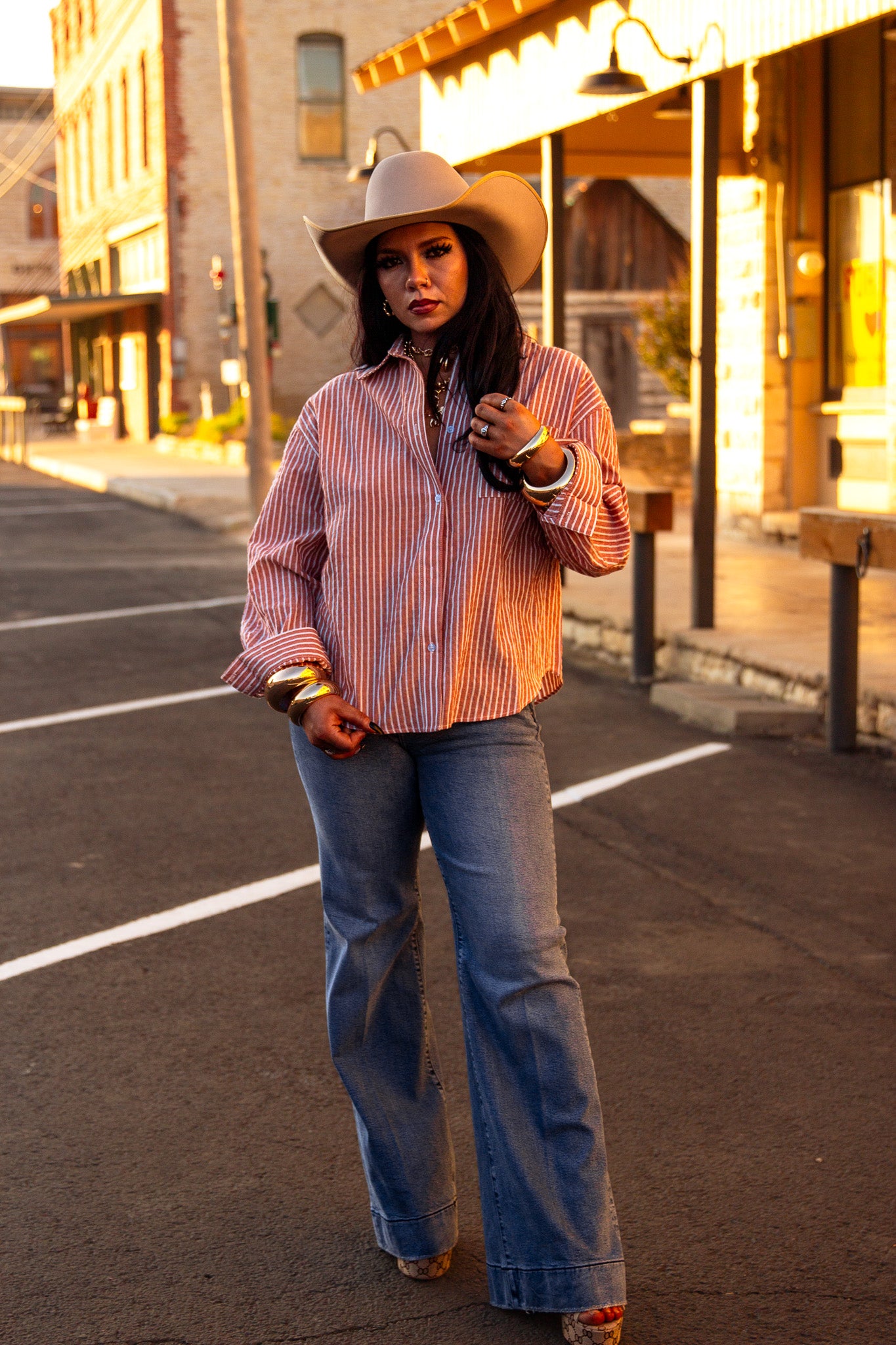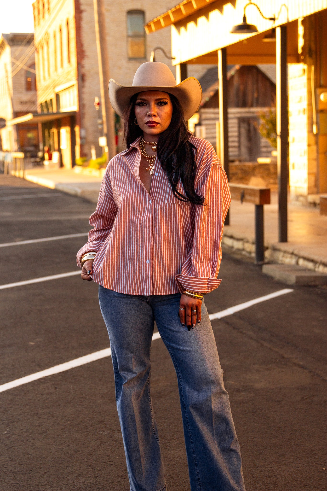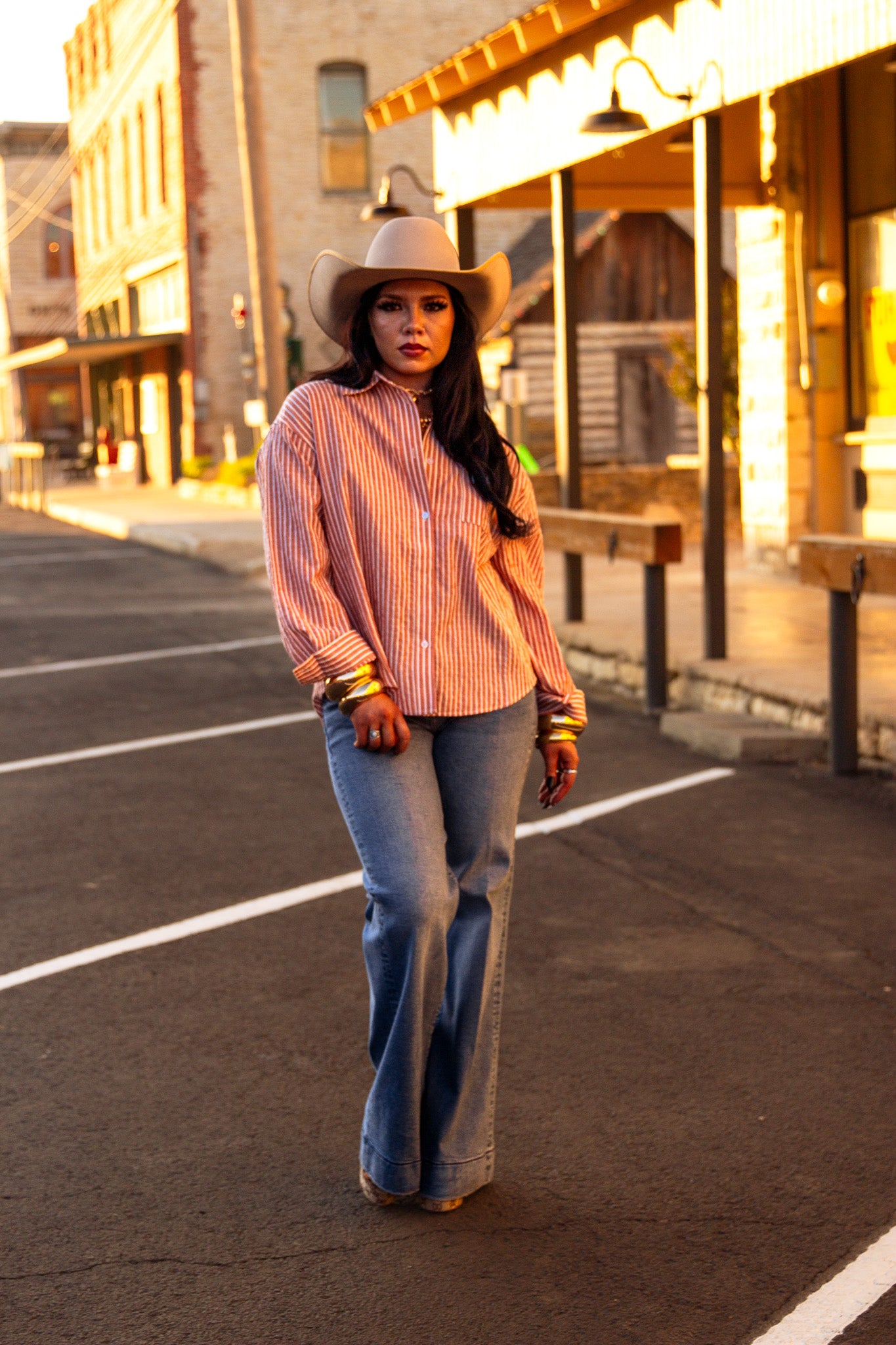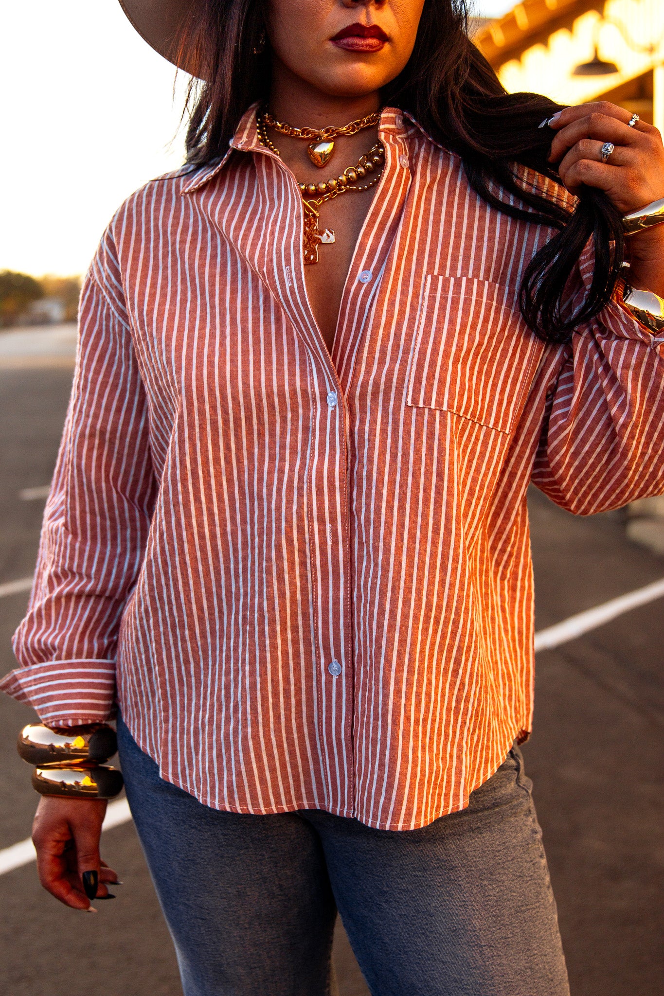The Charis Top is a versatile addition to any wardrobe. With its cropped, button-up design and charming pattern, this long sleeve top adds a touch of sophistication to any outfit. Made with durable materials, it offers both comfort and style. Perfect for any occasion.