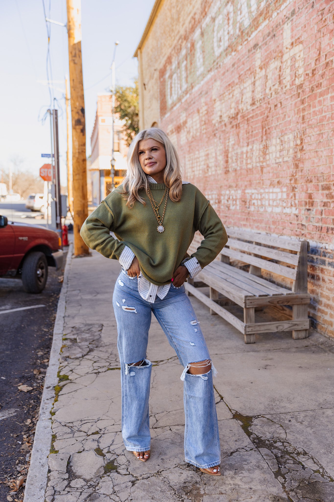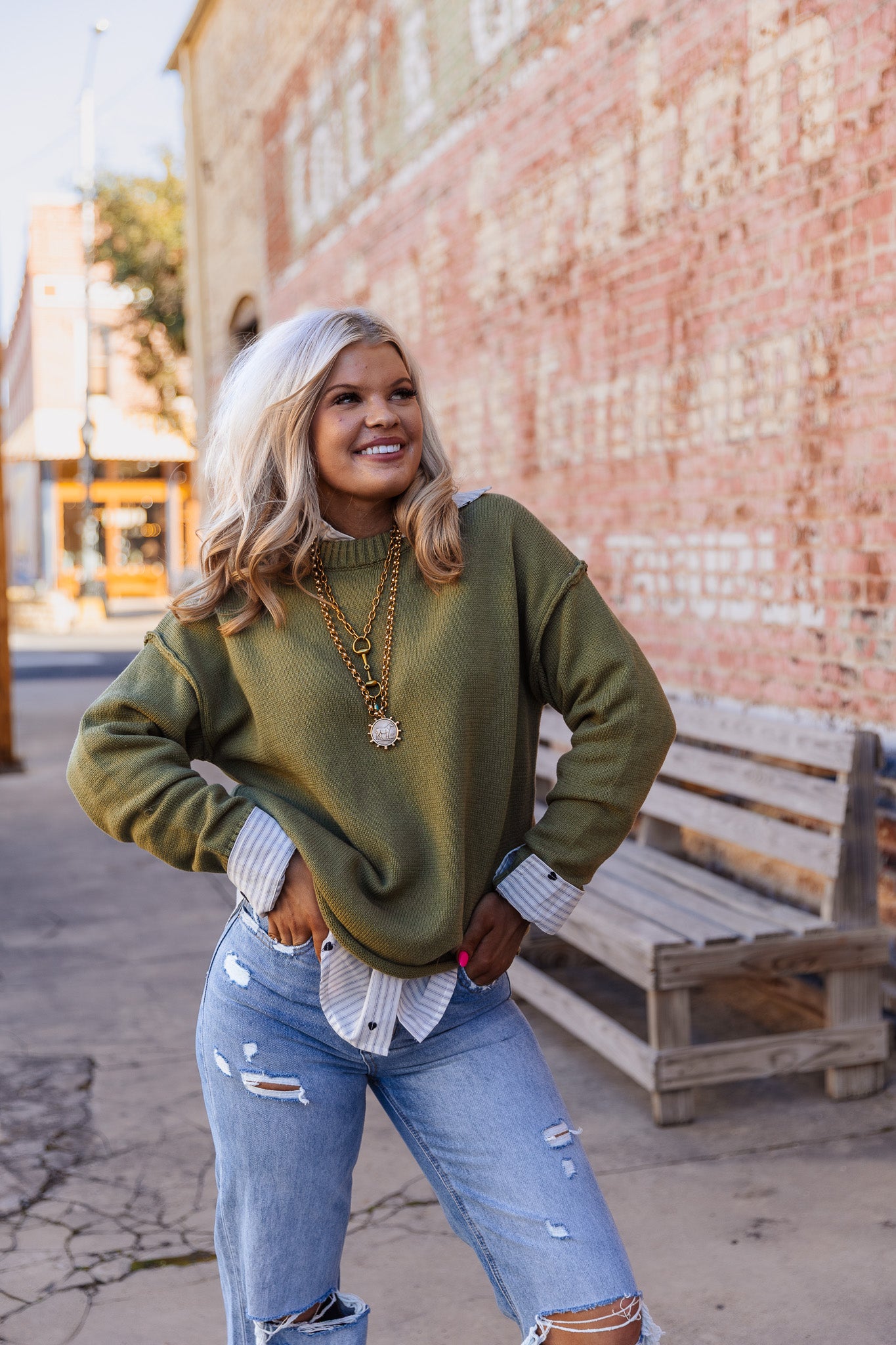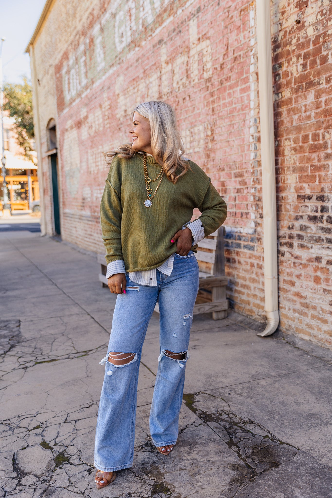The Lucky In Love Sweater, rendered in an olive hue, offers versatility in styling, making it suitable for various occasions. Olive, a neutral shade, complements a wide range of colors and skin tones. This sweater is ideal for layering, enhancing both warmth and aesthetic appeal.