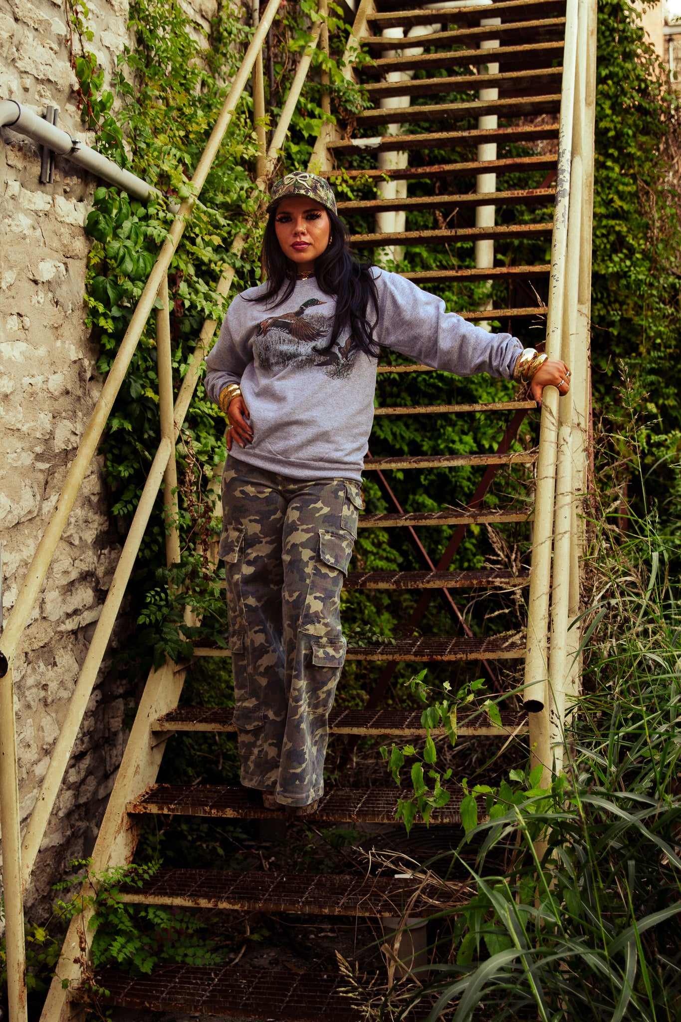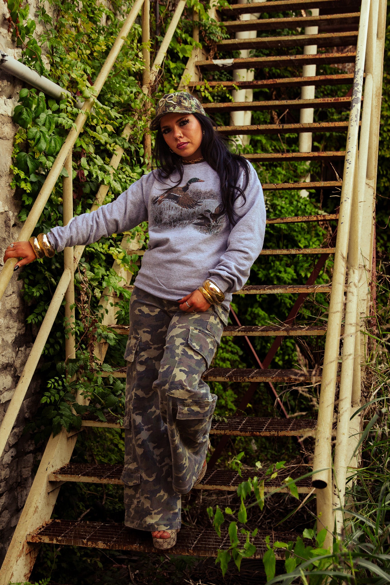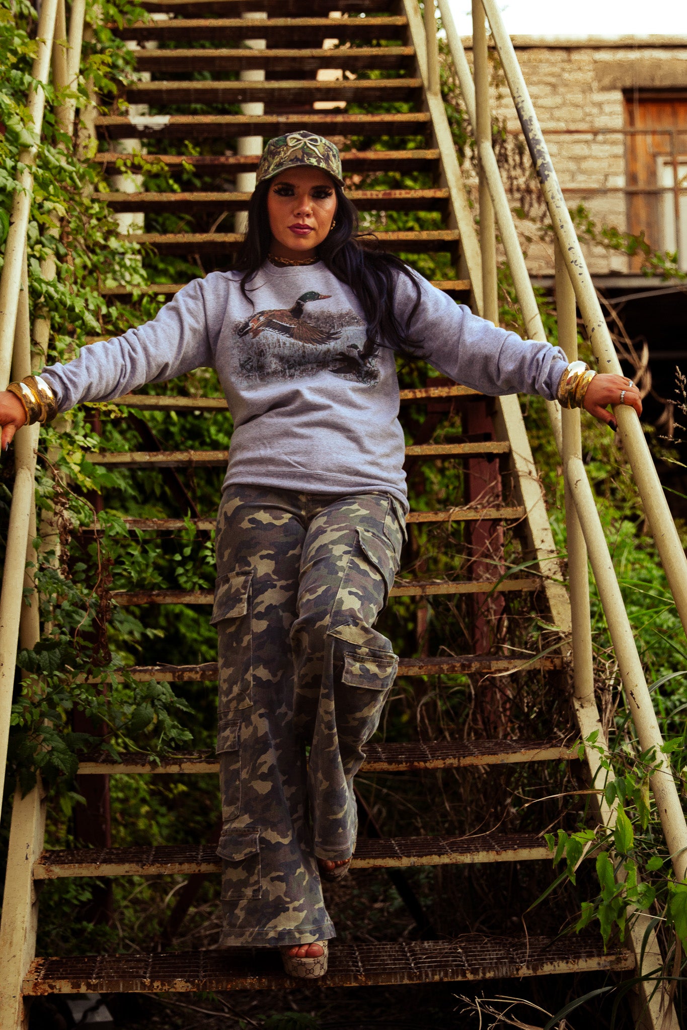 "The Prairie Pond Darling sweater showcases a beautiful duck scene, perfect for nature lovers. Made with high-quality materials, this sweater offers both style and functionality. Stay warm and stylish with this unique and charming addition to your wardrobe."
