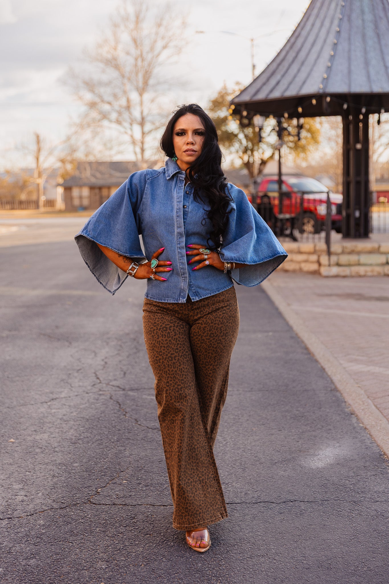 Unleash your wild side with The Wild Thang Jeans! These high-waisted, wide-leg leopard print jeans are perfect for making a bold statement. Their striking brown pattern adds a touch of fierce elegance, allowing you to express your unique style while feeling effortlessly confident. Embrace your inner fashionista!