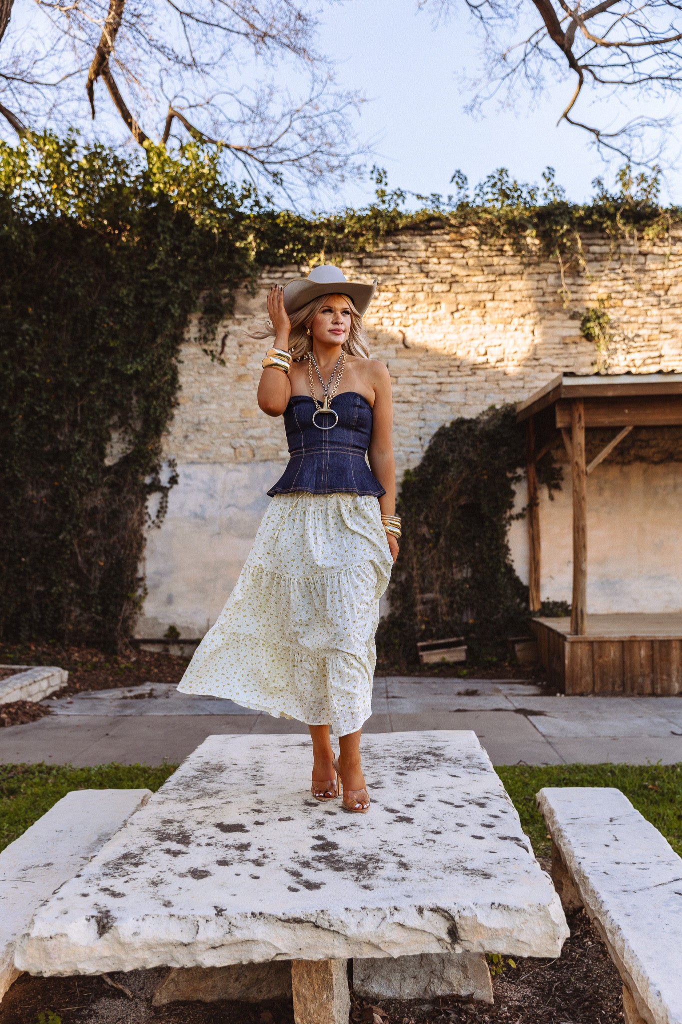 Meet The Sampson Top: your new denim delight that’s ready to bring the party to your torso! Crafted from dark denim and decked out in playful stitching, this tube top keeps you stylish while leaving your arms free for all those spontaneous dance moves. So, grab it and strut your stuff!
