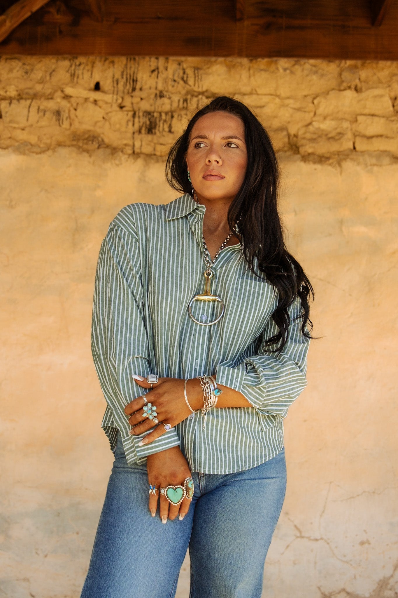 The Charis Top is a versatile addition to any wardrobe. With its cropped, button-up design and charming pattern, this long sleeve top adds a touch of sophistication to any outfit. Made with durable materials, it offers both comfort and style. Perfect for any occasion.