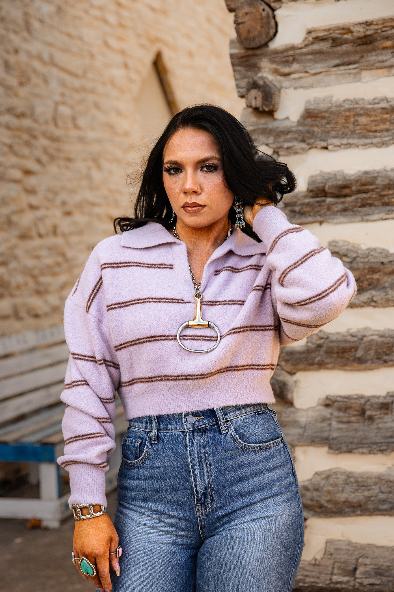 Elevate your style with The Sherman Sweater! This charming pink-toned lavender cropped knit features elegant plum tone stripes and a chic collar, perfect for adding a touch of sophistication to any outfit. Embrace comfort and flair while making a statement—this sweater is a must-have for your wardrobe!