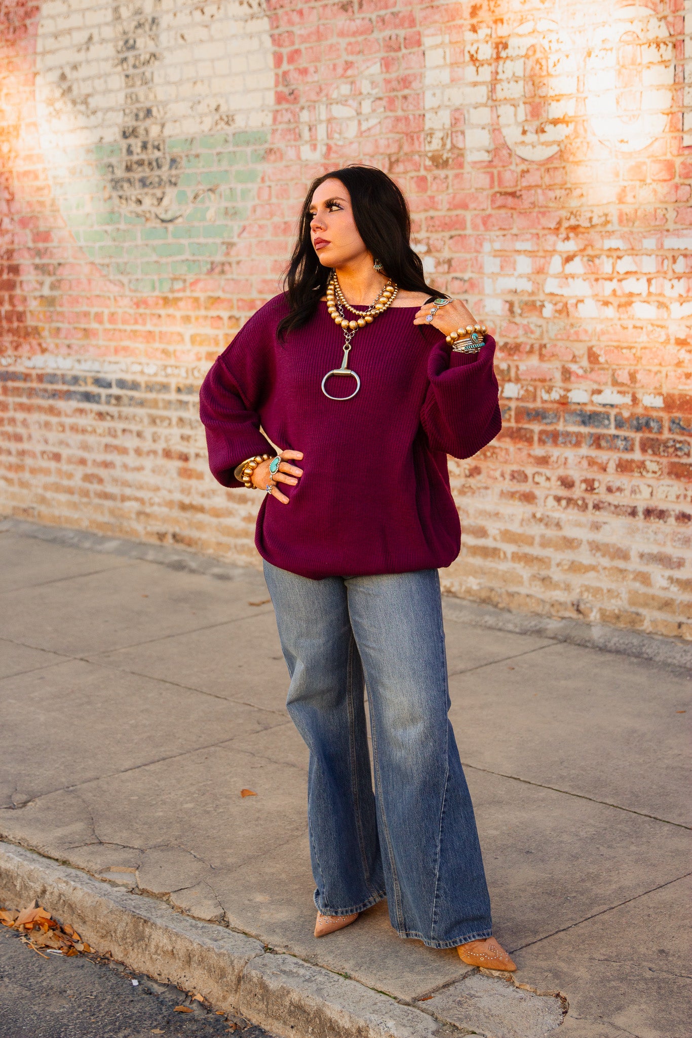 Stay cozy and stylish with The Napa Sweater. Its mauve wine color adds a pop of fun to any outfit, while the boat neck and long sleeves keep you warm. Perfect for snuggling up by the fire or heading out for a night on the town.
