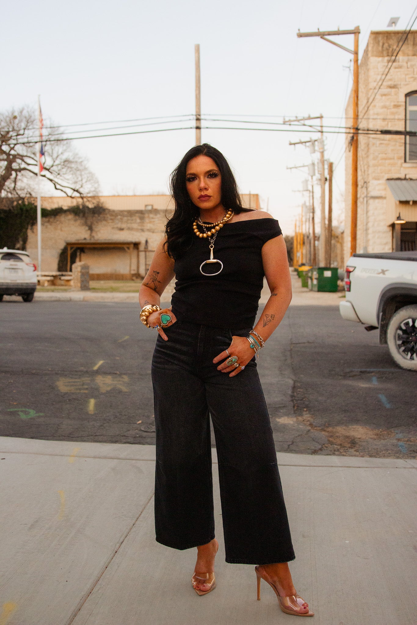 A sleek black one-shoulder top with a soft, structured fit and an effortless drape. Flattering, versatile, and easy to dress up or down — a go-to staple for nights out or everyday wear.
