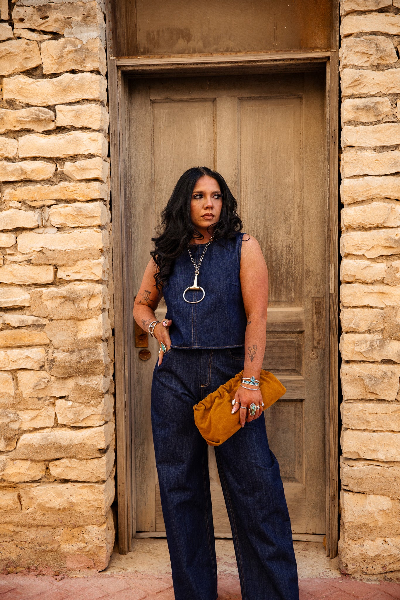 Unleash your inner daydreamer with The Denim Daydream Set! This sleeveless top ties back like a stylish bow on your favorite present (you!). Paired perfectly with dark denim jeans, it's the dream combo for turning any outing into a runway—no model experience required!