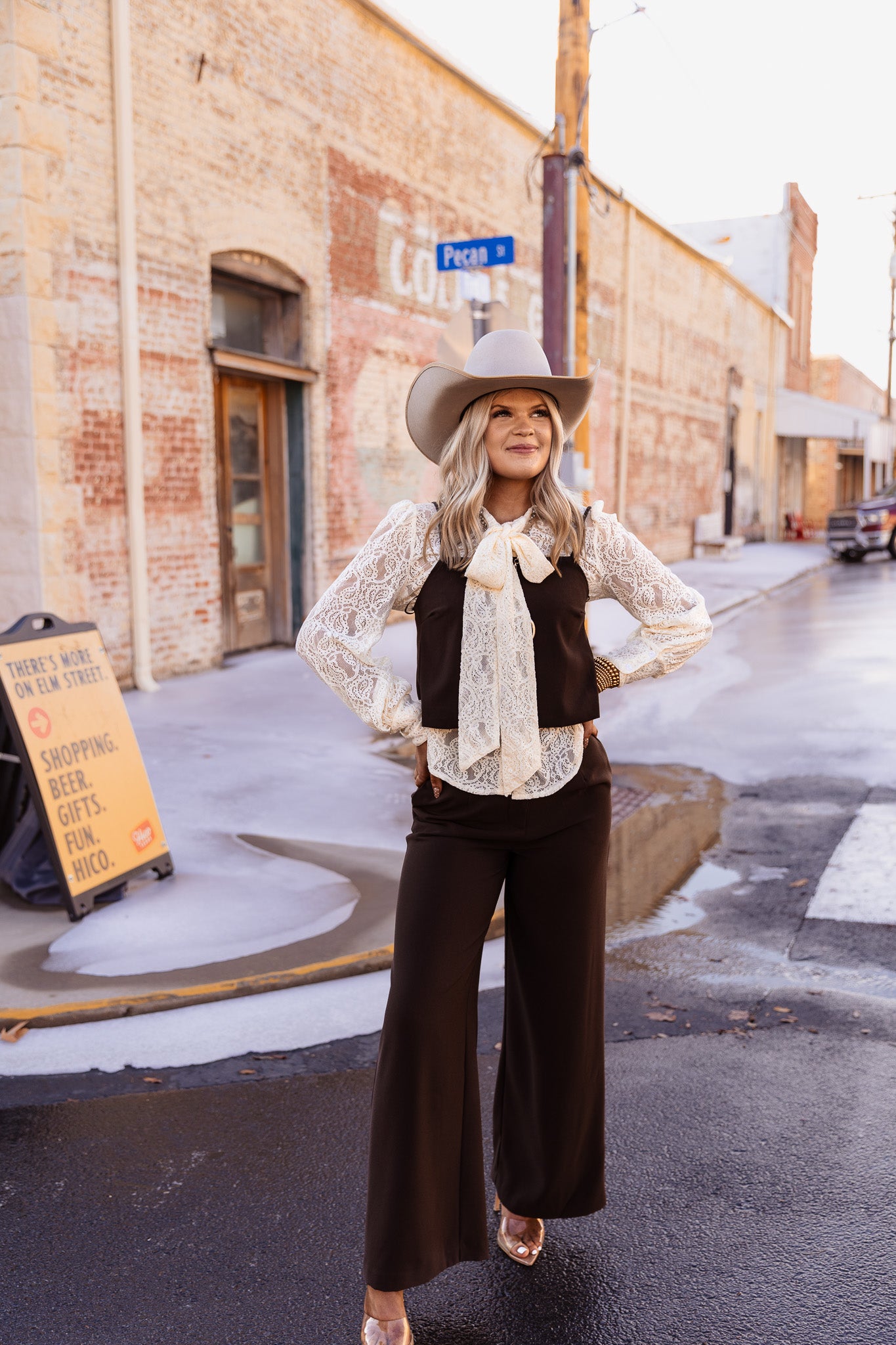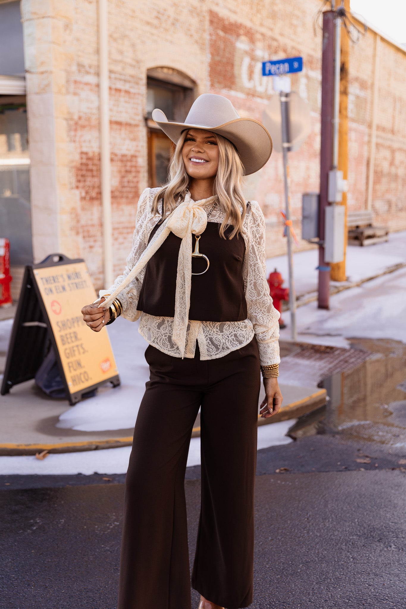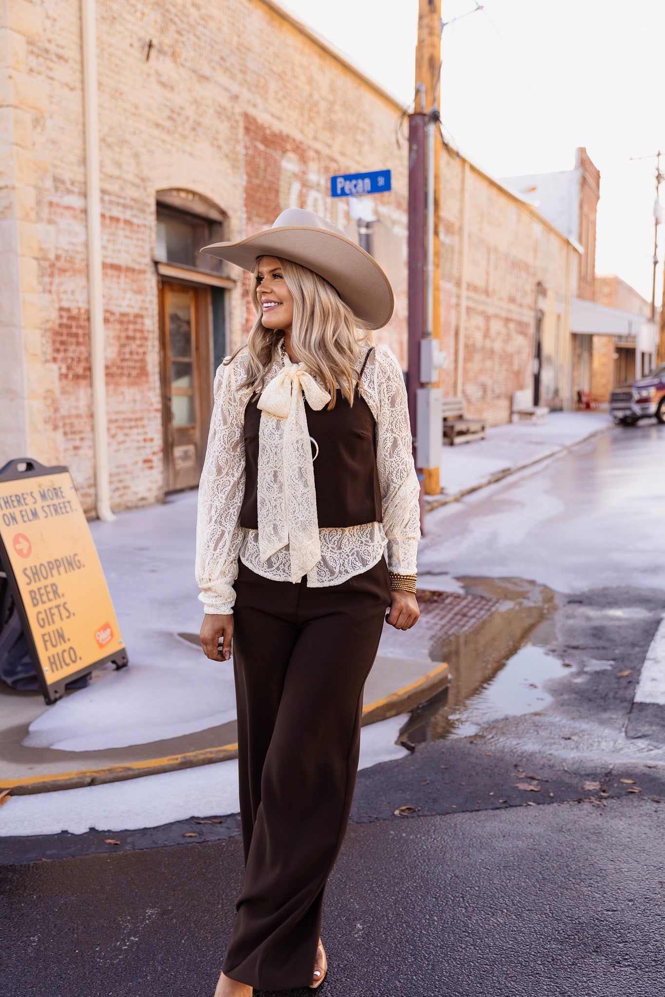 The Desert Dusk Top features a strap shoulder design in a rich chocolate brown color. This versatile top is ideal for warm climates, offering breathability and a flattering silhouette. Its neutral tone enhances pairing options with various bottoms, making it a practical addition to any wardrobe.