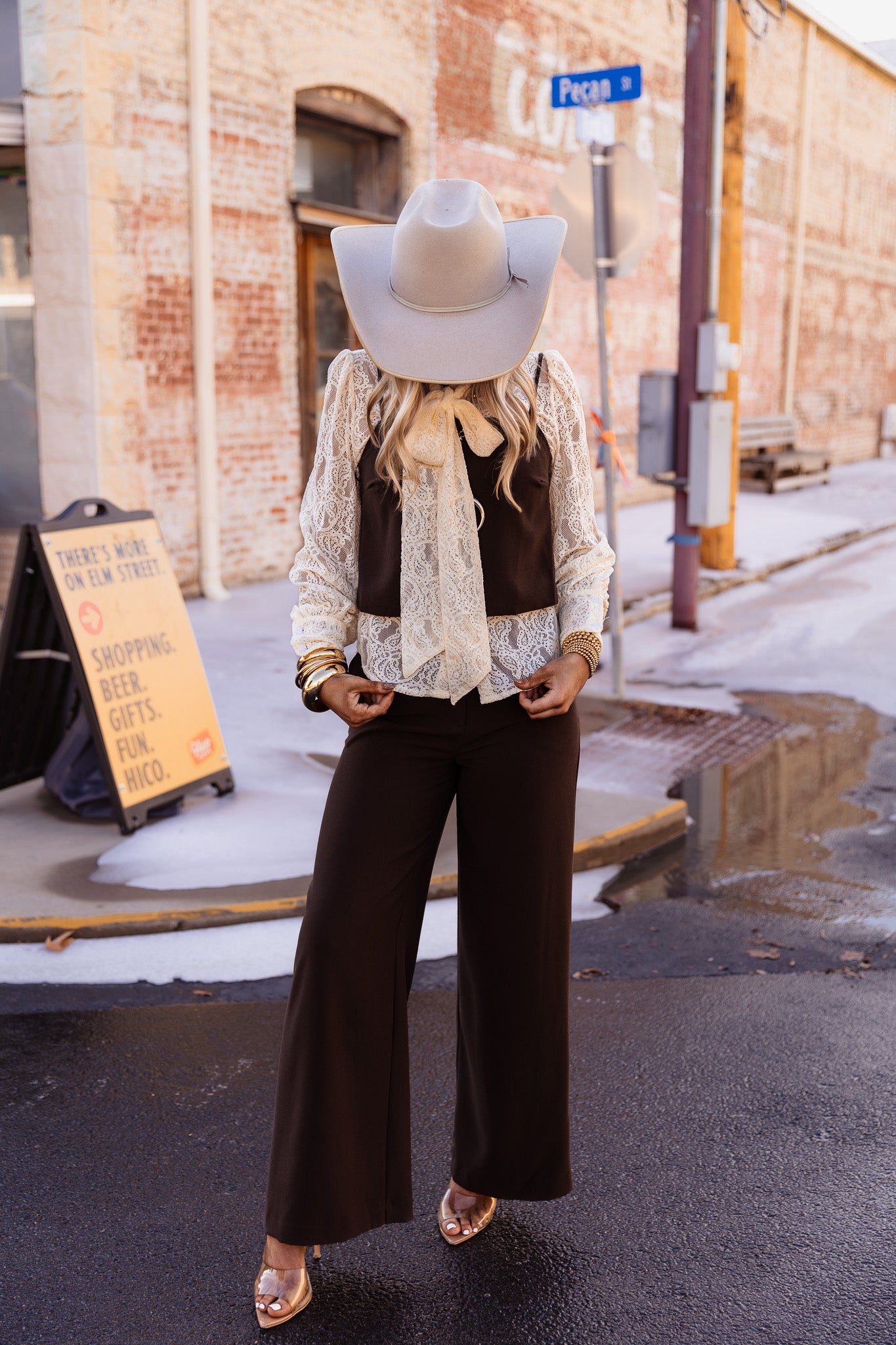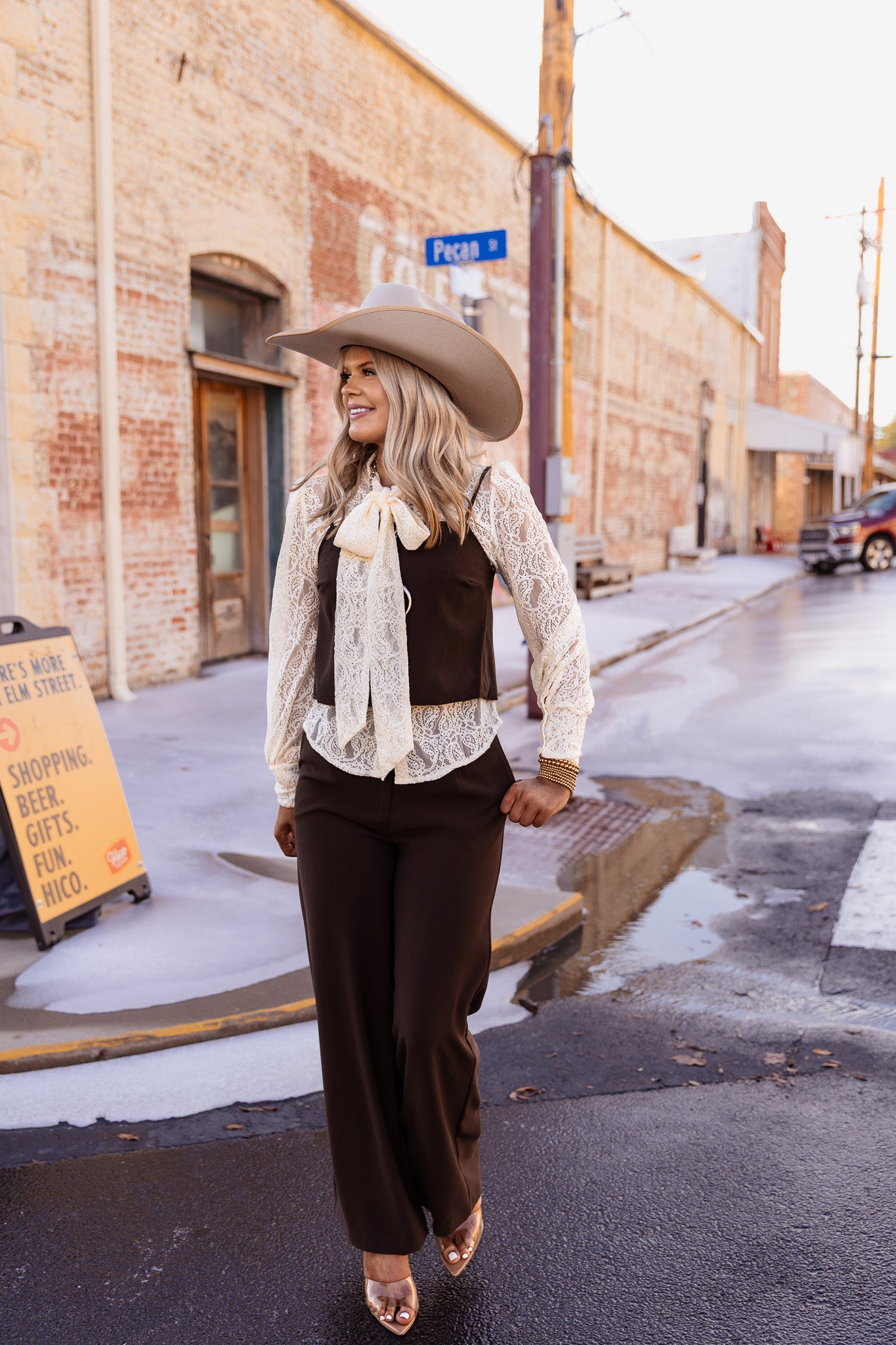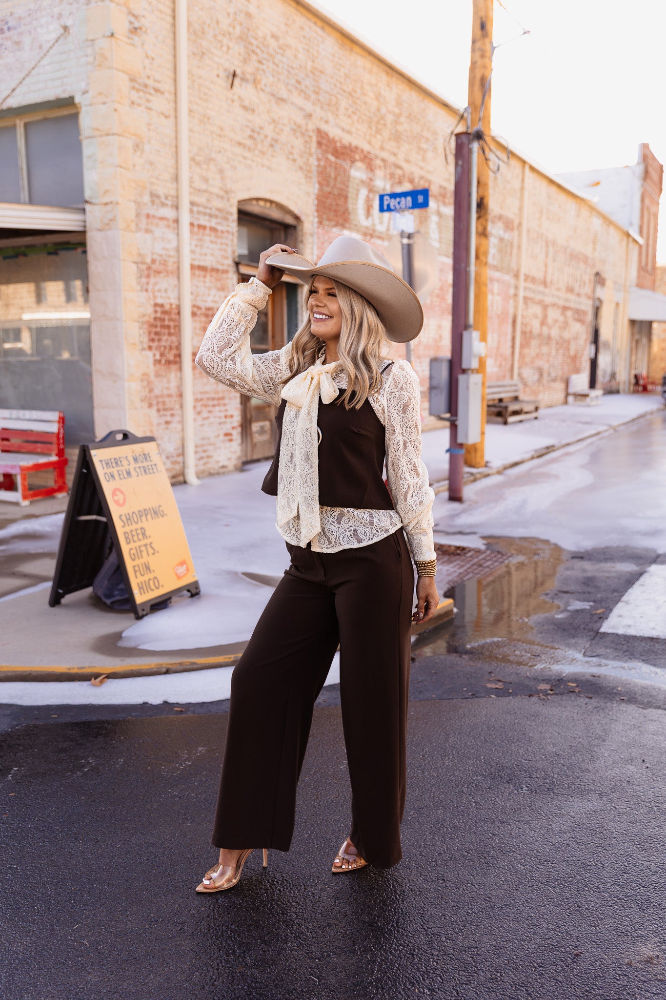 The Desert Dusk Top features a strap shoulder design in a rich chocolate brown color. This versatile top is ideal for warm climates, offering breathability and a flattering silhouette. Its neutral tone enhances pairing options with various bottoms, making it a practical addition to any wardrobe.