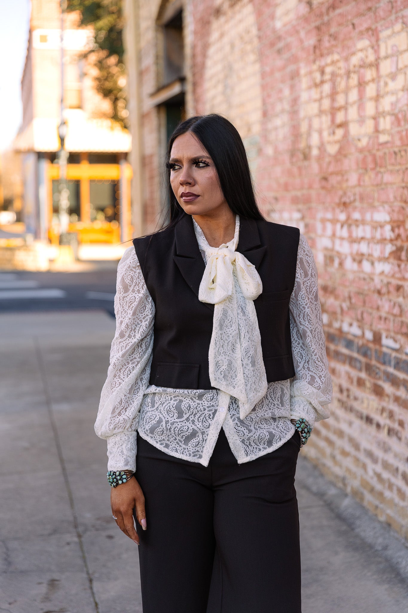 Elevate your wardrobe with The Laced Up In Ivory Top! This long sleeve ivory lace piece features a charming tie neck and elegant button-up design, perfect for creating a sophisticated, romantic look. Embrace your style and feel confident in this timeless top that adds a touch of grace to any outfit!