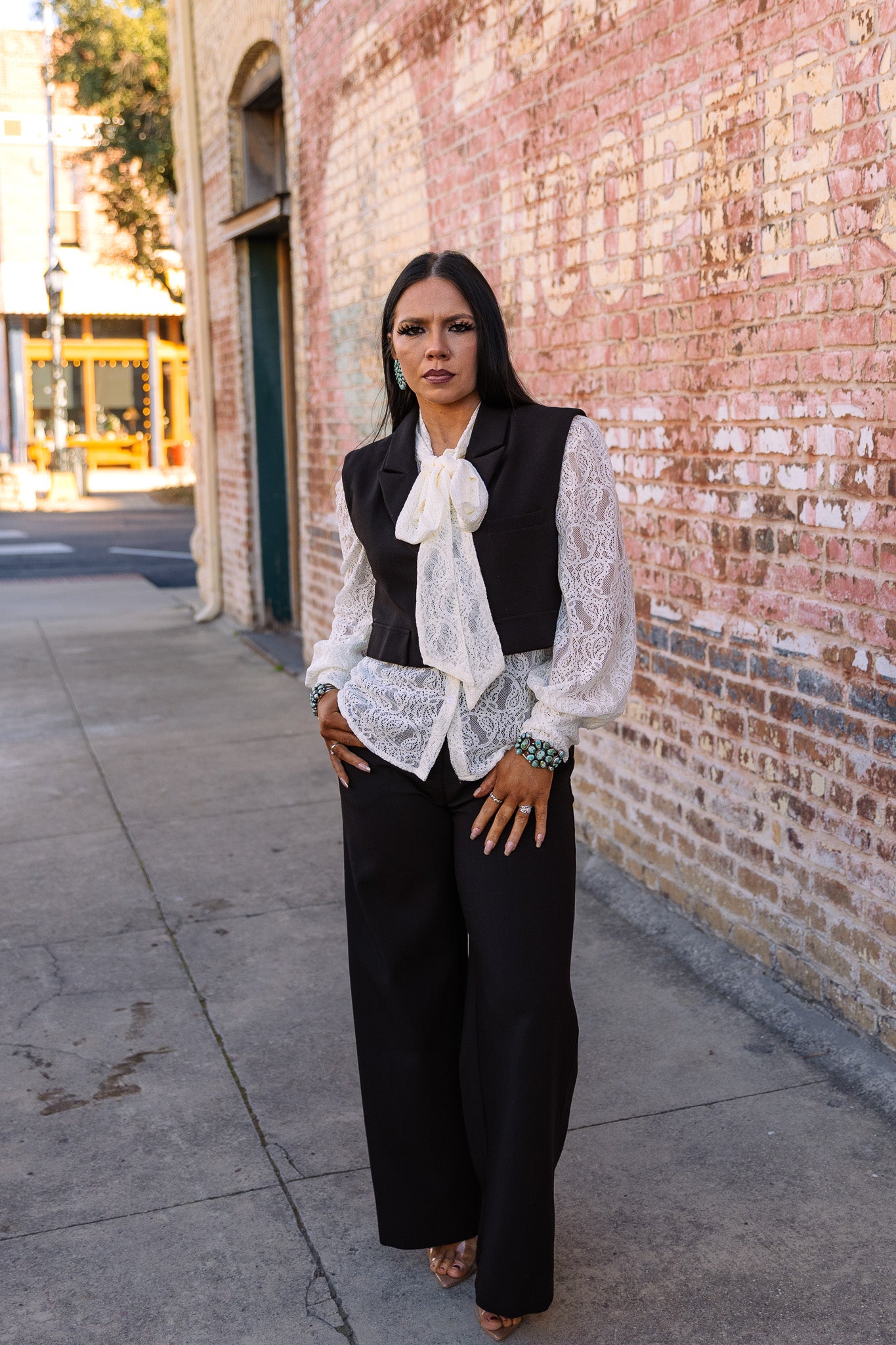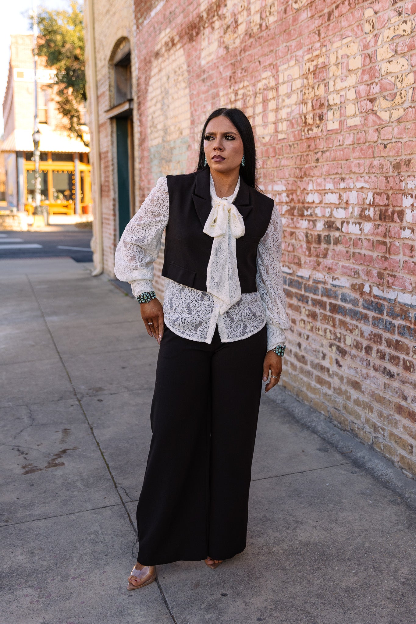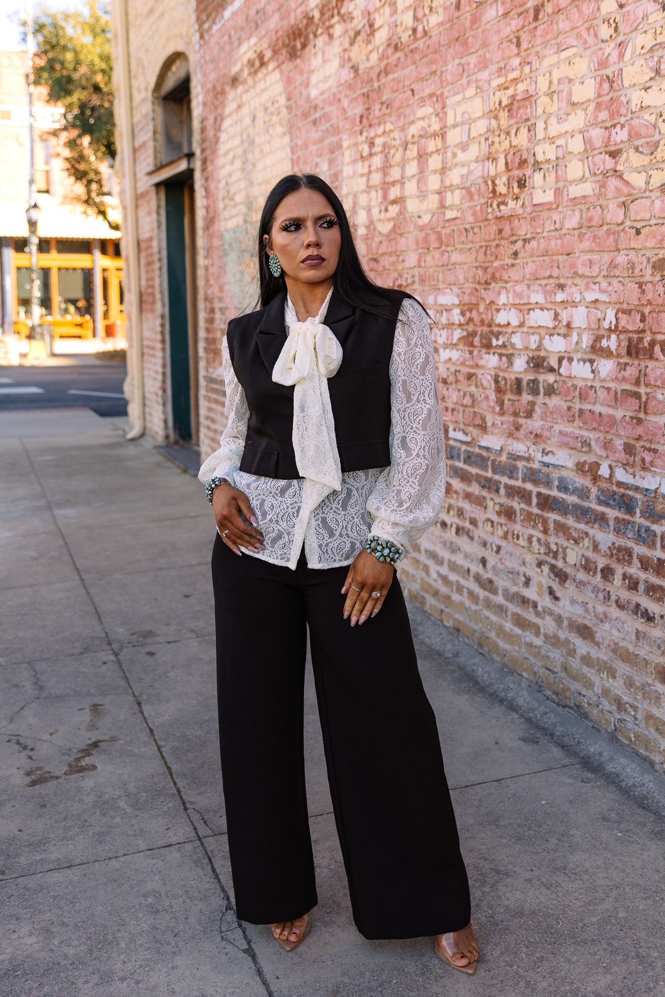 The Midnight Wrangler Top is a short flap vest jacket designed for versatility and style. Its structured design allows for easy layering, making it suitable for various weather conditions. Crafted with durable materials, this vest offers functionality without compromising on aesthetic appeal, ideal for both casual and semi-formal settings.
