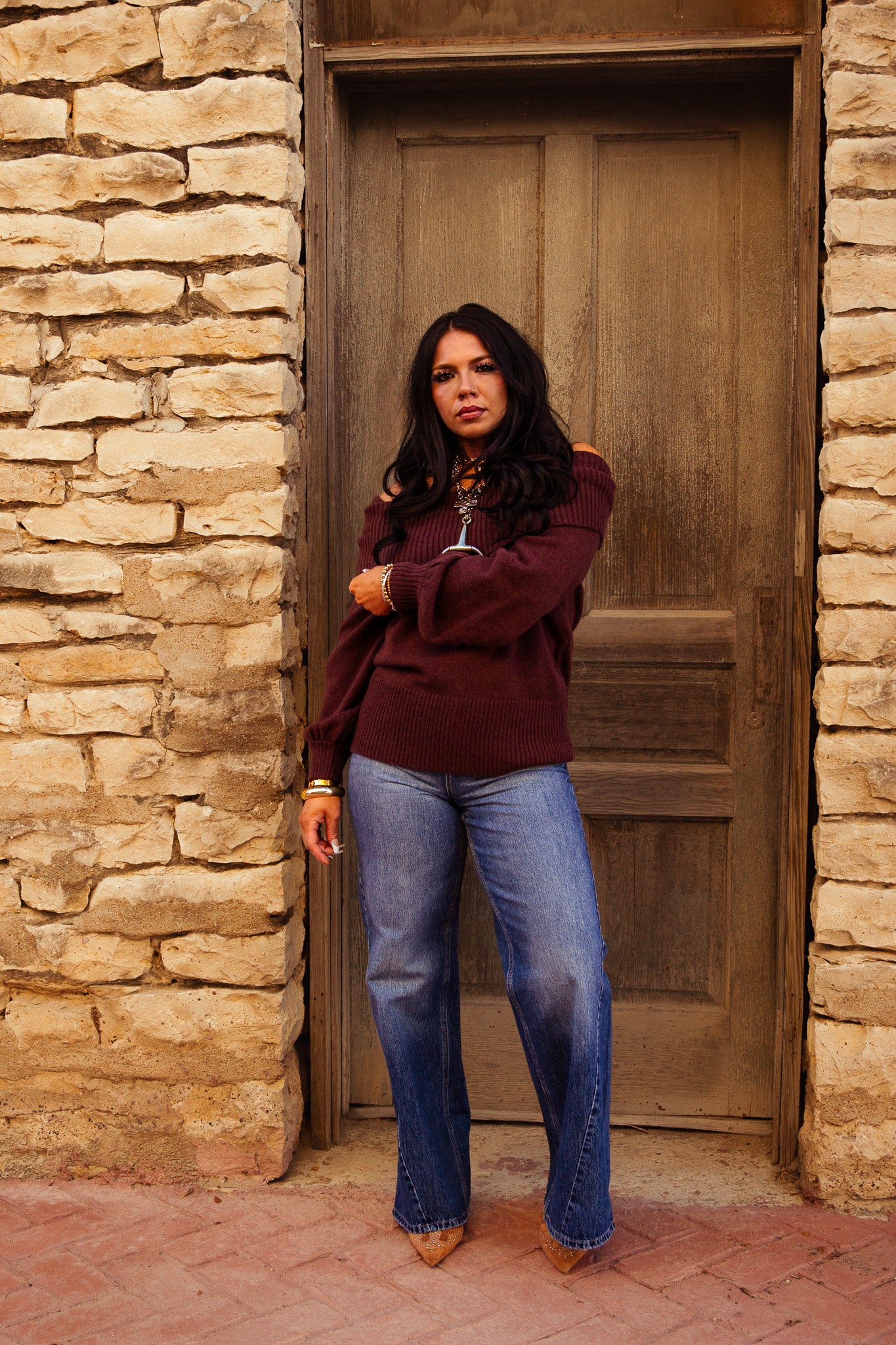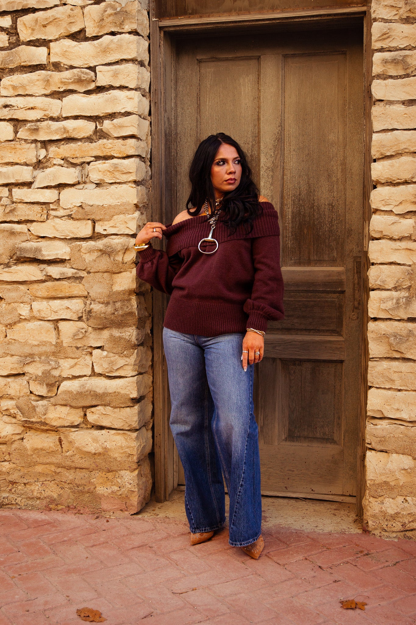 Get ready to turn heads in this cozy and stylish Sturgis Sweater Top. The brown ribbed design adds a touch of texture, while the off the shoulder style is perfect for showing off your collarbones. Made with a soft knit fabric, this top will keep you warm and looking chic.