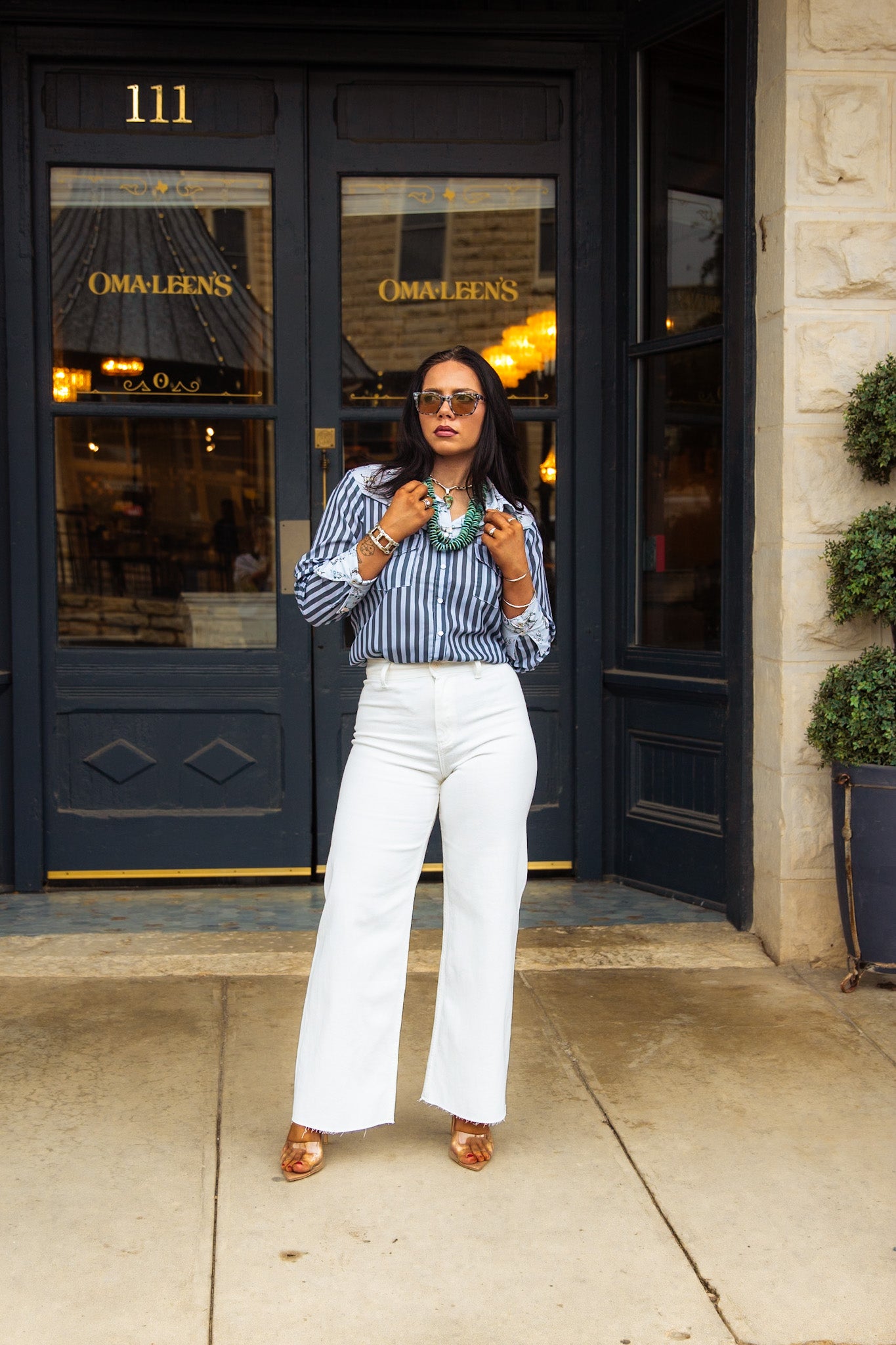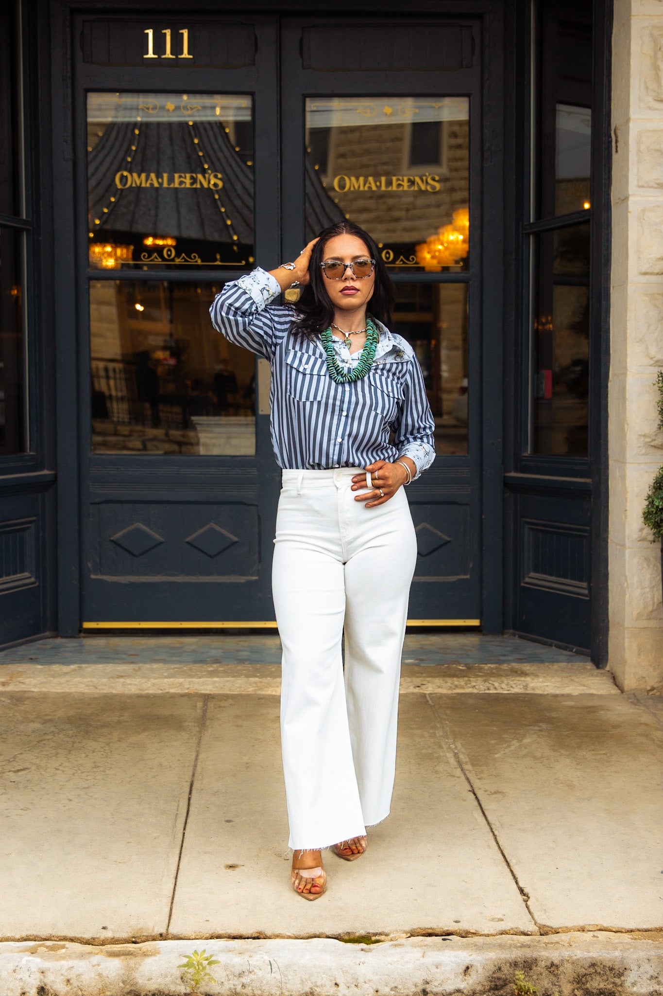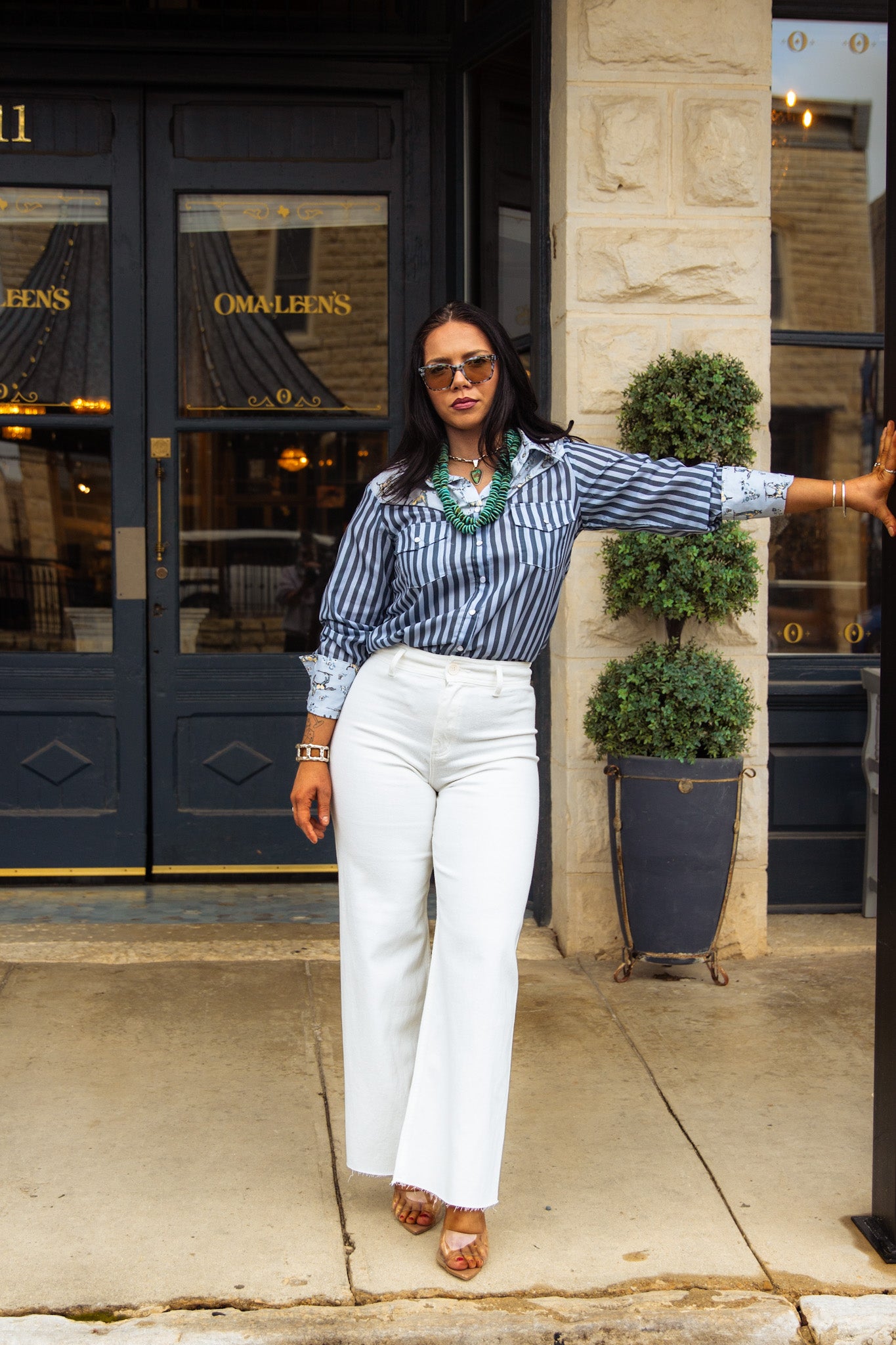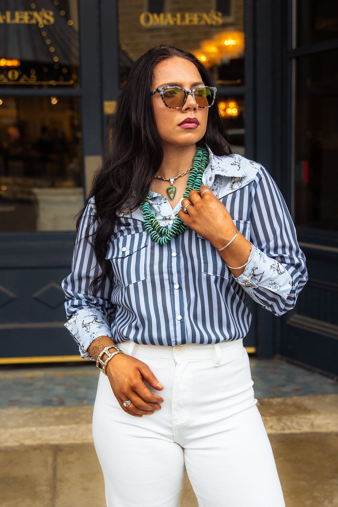 "The De Ann Top is the perfect blend of class and western style. With a long sleeve pearl snap button down design and a variety of blue stripes adorned with horses and flowers, it's easy to dress up or down. High quality and oh so stylish! Yeehaw!"