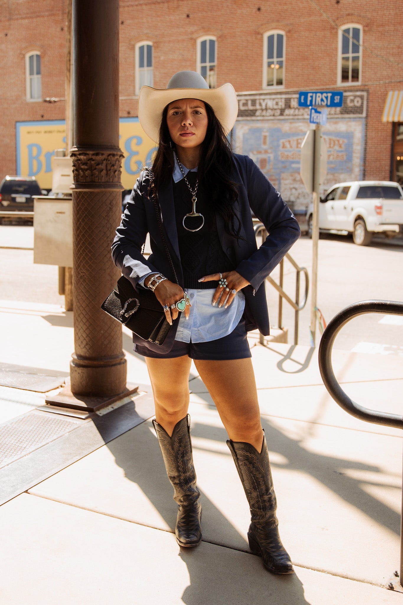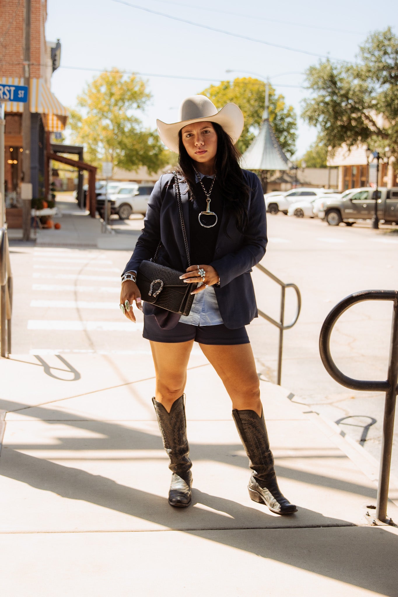 Elevate your style with The Crawford Blazer. Made with luxurious oxford blue fabric, this long sleeve blazer is perfect for any occasion. Stay sharp and sophisticated while exuding confidence and elegance. Upgrade your wardrobe today.